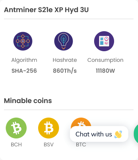 The Antminer S21e XP Hyd 3U, also known as Antminer U3S21EXPH, is a powerful Bitcoin miner with a hashrate of 860 TH/s and power consumption of 11,180W. Featuring Bitmain’s advanced hydro cooling system, it delivers optimal performance while maintaining efficient energy use and extending the machine’s lifespan.